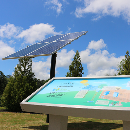 Lovinggood Middle School, Powder Springs, and the Cobb County Safety Village, Marietta, use small-scale solar power generating stations, installed by Cobb EMC and SPARK Energy Education Program, to teach students about renewable energy.